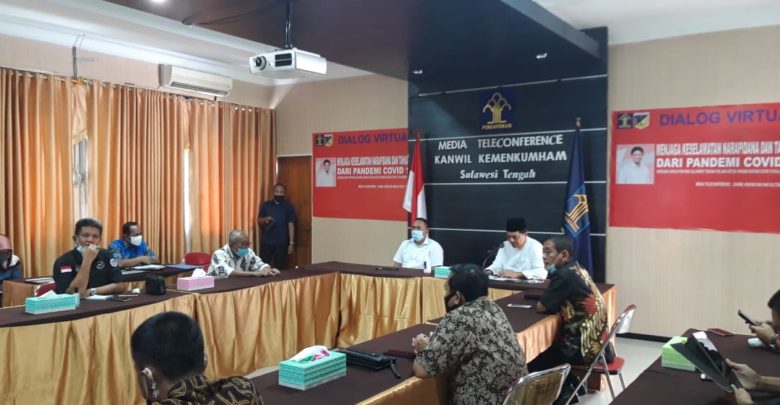 BIDIKSULTENG- PALU- Kanwil Kemenkumham Sulawesi Tengah gelar dialog virtual bertemakan Menjaga Keselamatan Narapidana dan Tahanan dari Pandemi COVID-19 yang diikuti Ka.Lapas Se-Sulawesi Tengah, pada Kamis (21/5/2020).