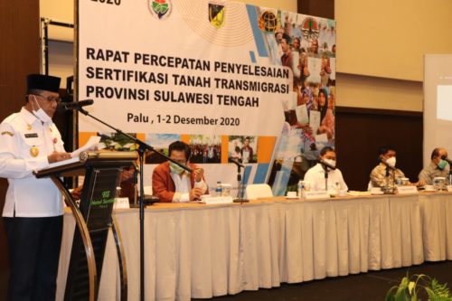 Dalam sambutan Gubernur, Wagub Sulteng Dr. H. Rusli Dg Palabbi SH MH menyampaikan, dalam rangka mendukung kelancaran program transmigrasi di daerah, baik program transmigrasi baru maupun terhadap lokasi yang sudah diserahkan, disadari bahwa dalam pelaksanaan ketransmigrasian masih terdapat permasalahan antara lain sertifikat hak milik (SHM), hak pengelolaan lahan (HPL), lokasi yang masuk kawasan dan sebagainya, sehingga diharapkan dalam rapat percepatan penyelesaian sertifikasi tanah transmigrasi dapat memberikan pencerahan dan jalan keluar dalam mengatasi permasalahan tersebut.