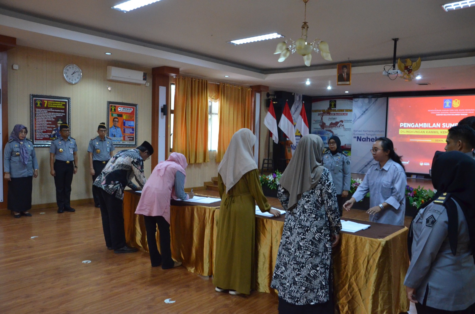 Acara ini dihadiri oleh para Pimti Pratama Kanwil Kemenkumham Sulteng, Perwakilan BHP Makassar, dan para wali yang diangkat sumpahnya. (HKKS/ID)