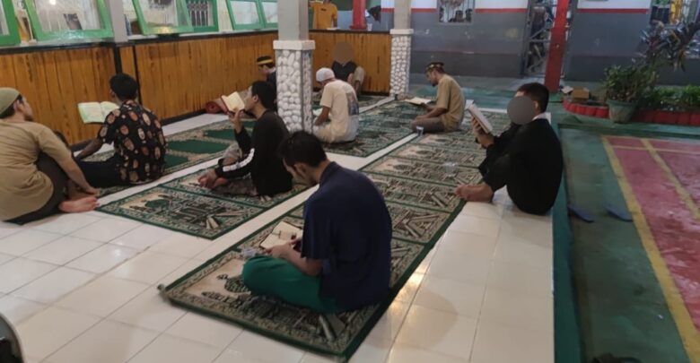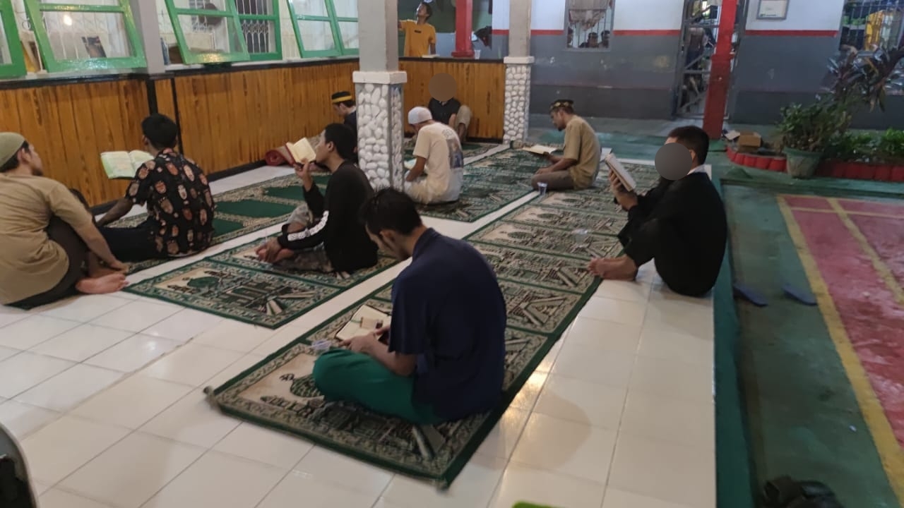 Kegiatan Tadarus ini dilaksanakan para warga binaan setiap selesai Salat Tarawih di Masjid At-Taubah Rutan Palu.