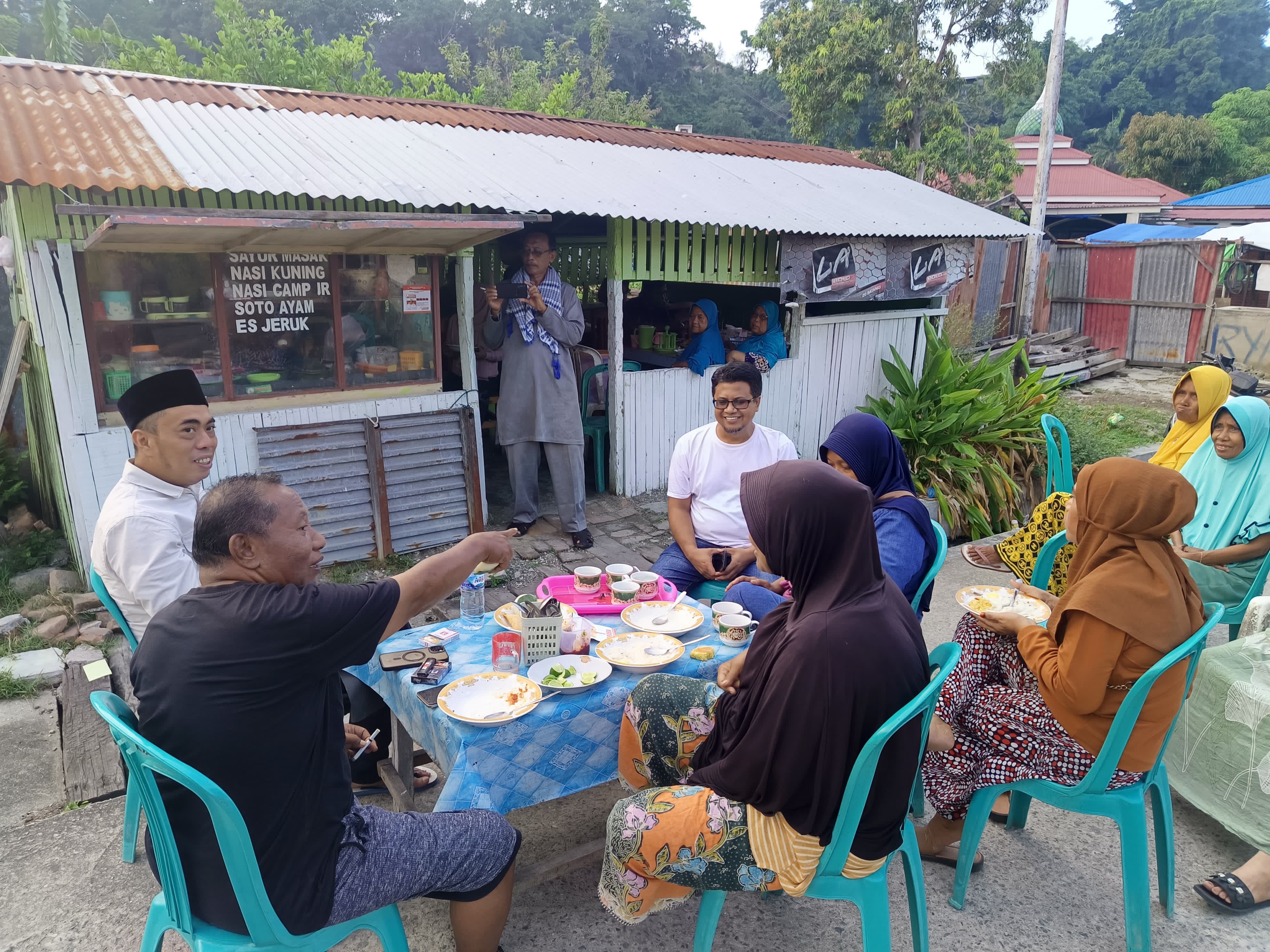 “Kamaimo tante, pak…kita makan buburnya Bu Nurlela, baru nanti kita ba cerita”, seru calon Bupati Donggala, Rahmad Arsyad mengundang warga yang hadir untuk makan bersama.