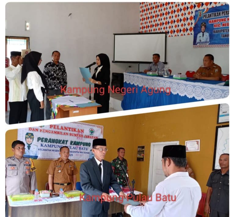 Harapan Camat Negeri Agung Hepi Haryanto,S.E. Adapun perangkat Kampung yang baru di lantik antara lain Nurjihan Rohadul Aisy (Kaur TU, Umum & perencanaan) untuk Kampung Negeri Agung Andri Alfiansyah sebagai Kaur keuangan Kampung Pulau Batu. (Budi)