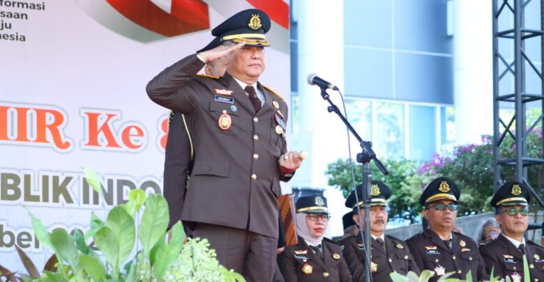 Kepala Kejaksaan Tinggi Sulawesi Tengah Nuzul Rahmat R, S.H., M.H Bertindak langsung sebagai inspektur upacara.