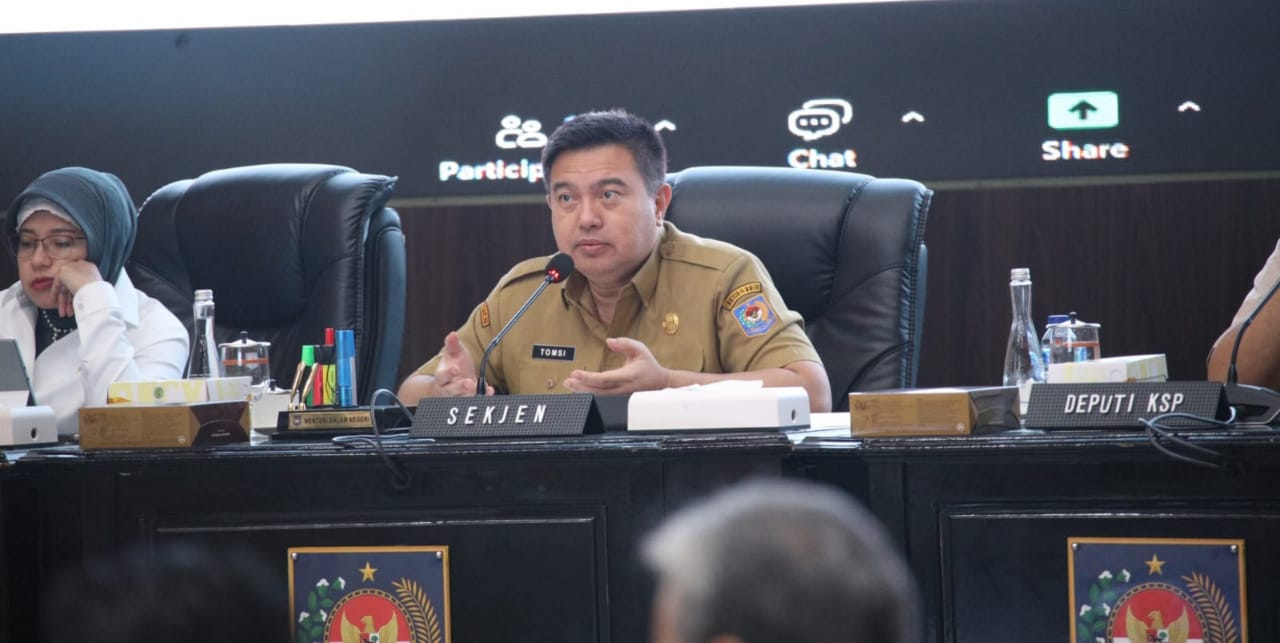 Hal ini disampaikannya saat memimpin Rapat Koordinasi Pengendalian Inflasi Daerah yang dirangkaikan dengan pembahasan evaluasi dukungan Pemda dalam Program 3 Juta Rumah serta pelaksanaan Peta Jalan Pembangunan Kependudukan (PJPK). Kegiatan tersebut berlangsung secara hybrid dari Gedung Sasana Bhakti Praja (SBP), Kantor Pusat Kemendagri, Jakarta, Selasa (16/9/2025).