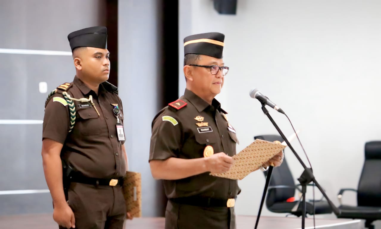Bidiksulteng.com,Palu  – Kepala Kejaksaan Tinggi Sulawesi Tengah Nuzul Rahmat R, S.H., M.H melantik dan mengambil sumpah jabatan Pejabat Eselon III di lingkungan Kejaksaan Tinggi Sulawesi Tengah, yaitu Asisten Pengawasan dan Asisten Intelijen, dalam sebuah upacara yang berlangsung khidmat dan sederhana di Aula Aziz Lamadjido1 Lt.6 Kejati Sulteng.