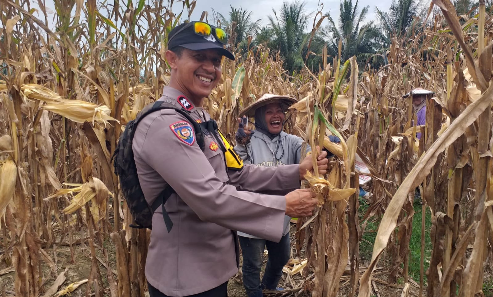 Polri Hadir di Tengah Petani, Bhabinkamtibmas Desa Luku Dampingi Panen Jagung Dukung Ketahanan Pangan Nasional