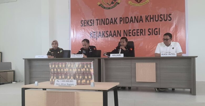 Bidiksulteng.com,SIGI – Kejaksaan Negeri (Kejari) Sigi terus meningkatkan upaya pencegahan tindak pidana, khususnya di bidang cukai, melalui program edukasi hukum dan kerja sama lintas sektor. Hal itu disampaikan dalam konferensi pers terkait penyetoran Rp1 miliar hasil rampasan perkara rokok ilegal ke kas negara, yang digelar di Aula Kejari Sigi, Desa Pombewe, Selasa (7/4/2026).