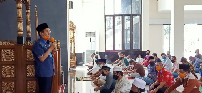 Selain itu, jamaah yang diperkenankan shalat hanya terbatas bagi ASN di lingkungan kantor gubernur dan masyarakat sekitar demi pencegahan covid-19.