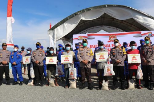 BIDIKSULTENG.COM, PALU – Sebanyak 600 paket sembako kembali dibagikan Polda Sulteng menyambut HUT Bhayangkara ke-74 tahun 2020 yang saat ini giliran warga Wani Kabupaten Donggala yang dikunjungi Kapolda Sulteng Irjen Pol. Drs. Syafril Nursal, SH, MH Bersama rombongan.