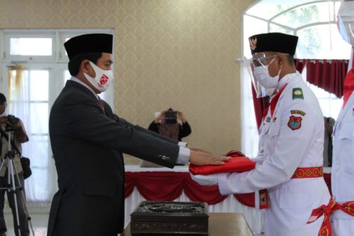 BIDIKSULTENG.COM, BANGGAI- Bupati Banggai, Dr. Ir. H. Herwin Yatim, MM, mengukuhkan Pasukan Pengibar Bendera Pusaka (Paskibraka) Kabupaten Banggai, Tahun 2020, di Ruang Rapat Umum, Kantor Bupati Banggai, Jumat (14/8/2020).