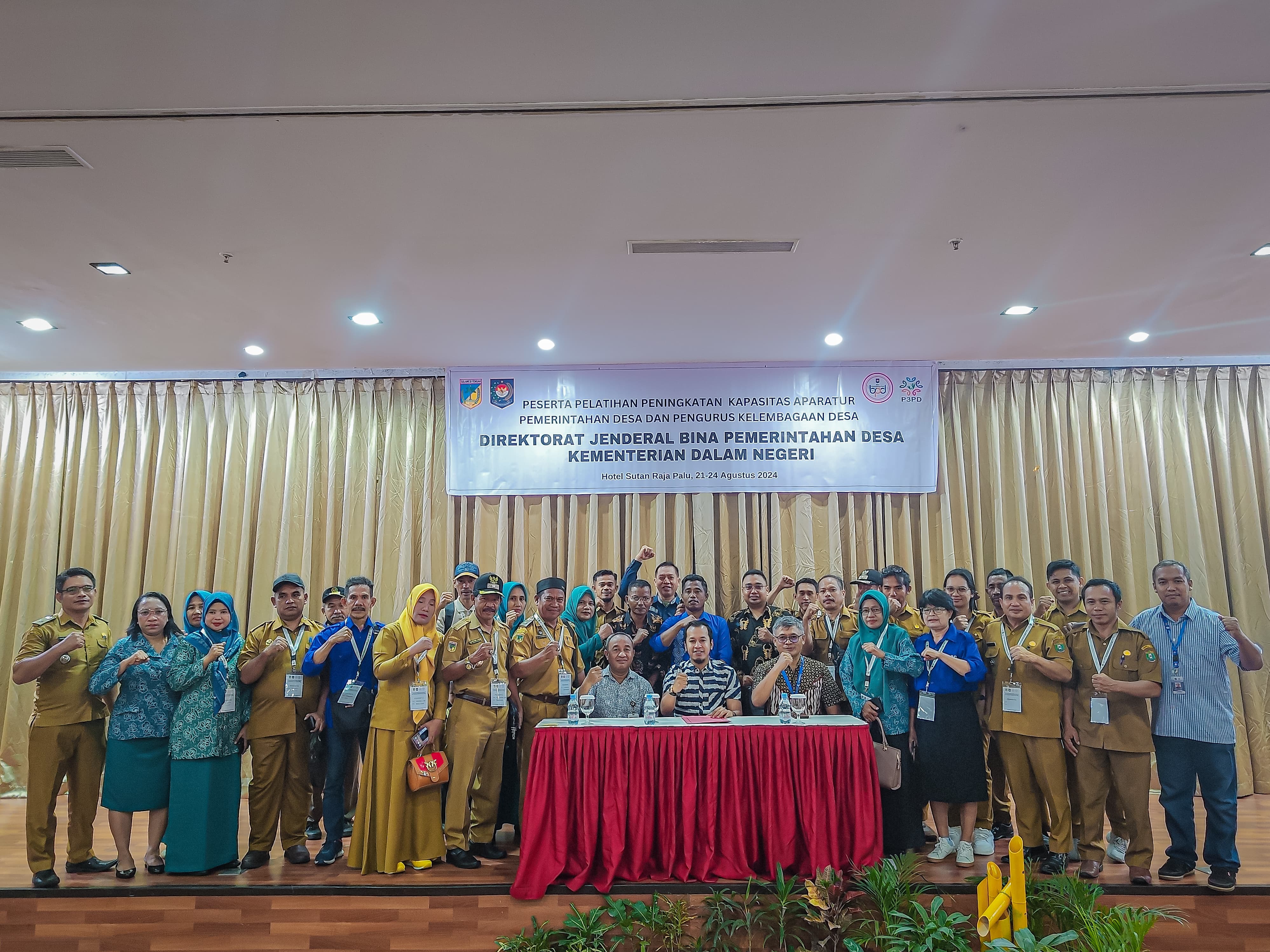 Berangkat dengan harapan ini, maka Direktorat Jenderal Bina Pemerintahan Desa Kementerian Dalam Negeri RI bekerjasama dengan Dinas Pemberdayaan Masyarakat Dan Desa (PMD) Sulteng menyelenggarakan Kegiatan Pelatihan Peningkatan Kapasitas Aparatur Pemerintahan Desa dan Pengurus Kelembagaan Desa Program Penguatan Pemerintahan dan Pembangunan Desa (P3PD) Angkatan I Tahun 2024.