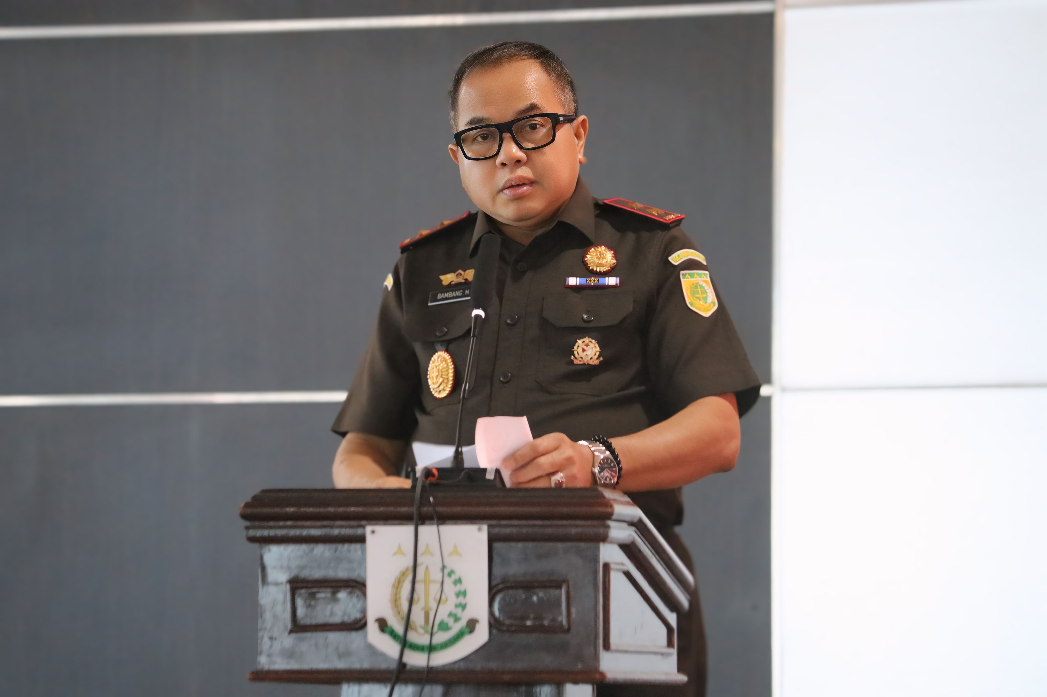Kepala Kejaksaan Tinggi (Kajati) Sulawesi Tengah Dr. Bambang Hariyanto, mengawali peryataannya tentang pentingnya kolaborasi antara masyarakat dan media dalam menciptakan budaya anti korupsi.