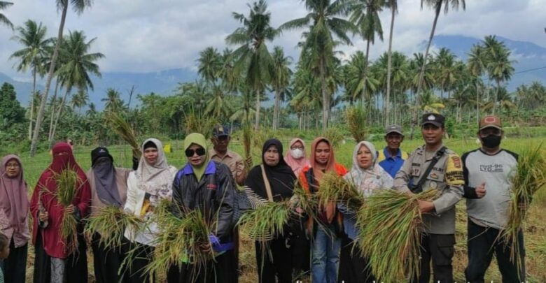 Pada kesempatan tersebut, Bhabinkamtibmas Tinggede Selatan Aipda Syafruddin menyambangi Kelompok Tani ‘Nosabatutu’ Desa Tinggede Selatan, yang sedang melaksanakan panen.
