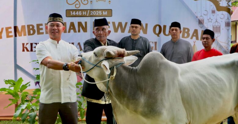Bidiksulteng.com,Sigi – Kepala Kepolisian Resor Sigi AKBP Kari Amsah Ritonga, S.H., S.I.K., M.H., memimpin langsung penyembelihan hewan kurban di Polres Sigi, Jumat (6/6/2025), di lapangan sepak bola Polres Sigi, di Desa Maku Kecamatan Dolo, Sigi.