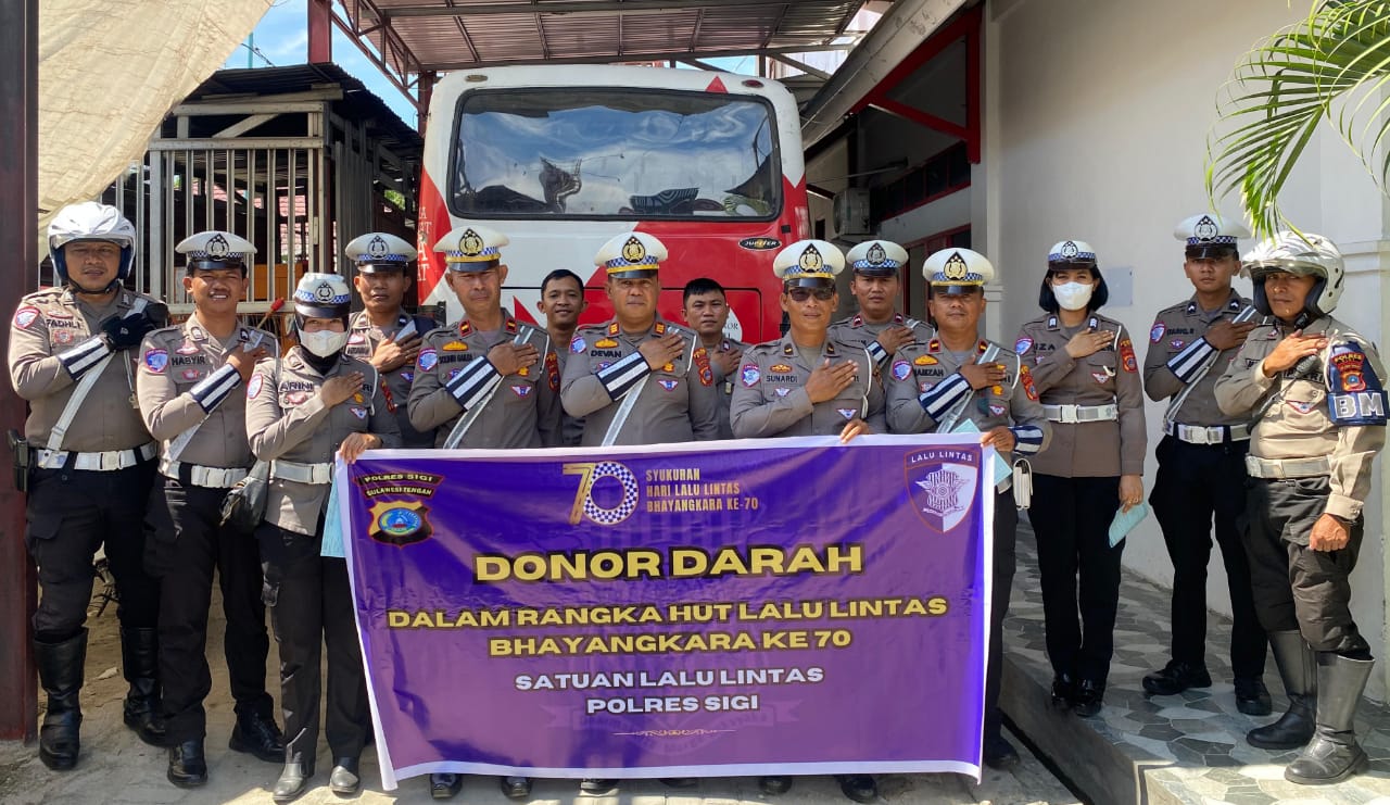 HUT Ke-70 Lalu Lintas Bhayangkara, Satlantas Sigi Tebar Kepedulian Lewat Donor Darah