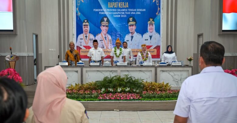 Rapat kerja turut dihadiri Wakil Gubernur dr. Reny A. Lamadjido, Bupati Tojo Una-Una Ilham Lawidu, SH, Wakil Bupati Tojo Una-Una Surya, S.Sos., M.Si., jajaran kepala perangkat daerah, unsur Forkopimda, para camat, lurah, hingga kepala desa se-Kabupaten Tojo Una-Una.(id)