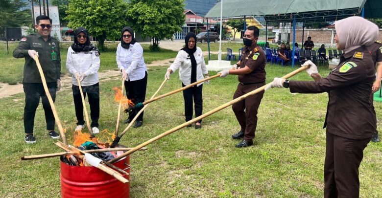 Kepala Seksi Pemulihan Aset dan Pengelolaan Barang Bukti, Mutiara Ayu Puspitasari dalam laporannya menyebutkan, barang bukti yang dilakukan pemusnahan terdiri 12 (dua belas) perkara penyalahgunaan narkotika jenis sabu. Adapun barang buktinya berupa narkotika jenis sabu dengan total keseluruhan sebanyak 62,8234 (enam puluh dua koma delapan ribu dua ratus tiga puluh empat gram, timbangan digital, dan rangkaian alat hisap atau bong. Selain itu, terdapat juga 13 (tiga belas) perkara tindak pidana umum lainnya yang memiliki barang bukti beragam diantaranya, sejumlah handphone, senjata tajam berupa parang, ketapel berikut anak panah, dan pakaian.(id)