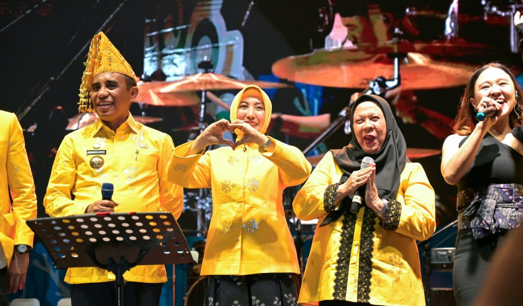 Kemeriahan semakin terasa ketika artis Justy Aldrin naik ke panggung membawakan tembang populernya, “Hilang”. Suasana bertambah hidup saat Gubernur Sulawesi Tengah turut bernyanyi bersama, menciptakan momen yang memukau dan disambut riuh tepuk tangan ribuan penonton. Kolaborasi tersebut menjadikan malam pembukaan Festival Teluk Tomini 2025 semakin meriah dan penuh kehangatan.