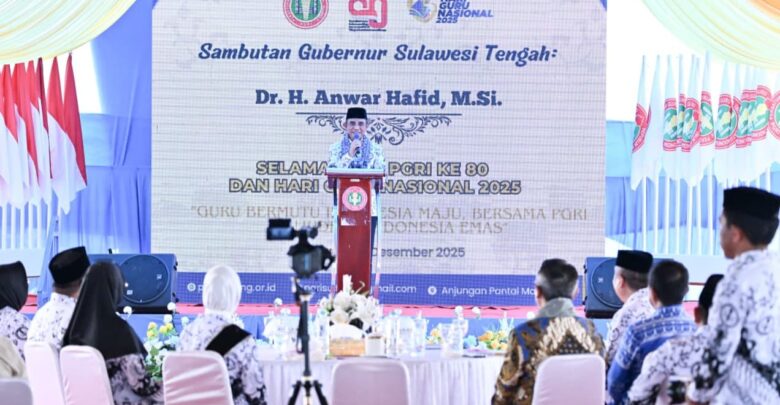 Gubernur Sulawesi Tengah, Dr. H. Anwar Hafid, M.Si, menyampaikan apresiasi tinggi atas dedikasi para guru yang menurutnya menjadi pilar kemajuan daerah.