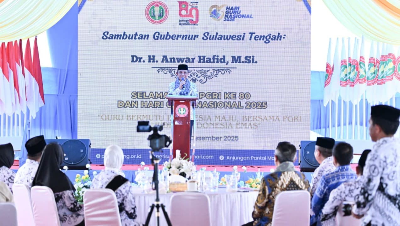 Gubernur Sulawesi Tengah, Dr. H. Anwar Hafid, M.Si, menyampaikan apresiasi tinggi atas dedikasi para guru yang menurutnya menjadi pilar kemajuan daerah.