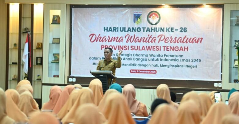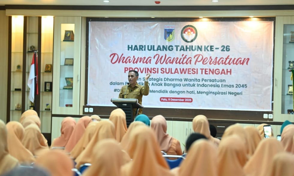 Bidiksulteng.com,palu – Gubernur Sulawesi Tengah, Dr. H. Anwar Hafid, M.Si., menghadiri puncak perayaan Hari Ulang Tahun ke-26 Dharma Wanita Persatuan (DWP) Provinsi Sulawesi Tengah yang digelar di Aula Sinergitas BPSDM Sulteng, Senin (9/12/2025). Acara berlangsung hangat dan penuh semangat dengan mengusung tema “Peran Strategis Dharma Wanita Persatuan dalam Pendidikan Anak Bangsa untuk Indonesia Emas 2045” serta tagline #DWPMengajar: Mendidik dengan Hati, Menginspirasi Negeri.