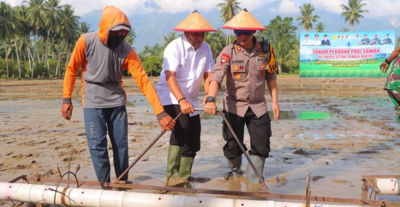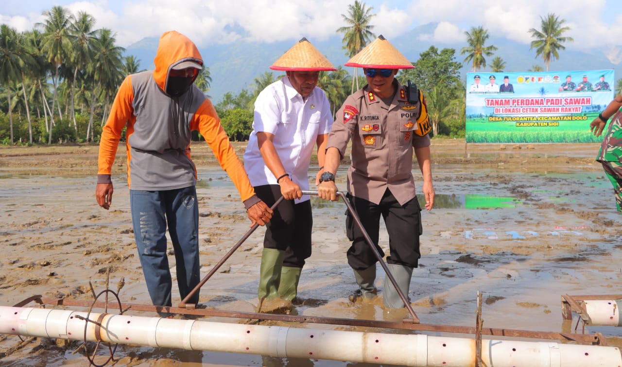 Bidiksulteng.com,Sigi – Kepala Kepolisian Resor Sigi, AKBP Kari Amsah Ritonga, S.H., S.I.K., M.H., menghadiri kegiatan tanam perdana padi sawah rakyat di lokasi cetak sawah yang dilaksanakan Pemerintah Daerah Kabupaten Sigi,Propensi Sulaweai Tengah dan bertempat di Desa Tulo Rantea, Kecamatan Dolo, Jumat (26/12/2025).