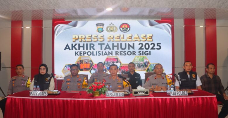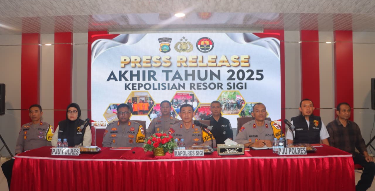 Bidiksulteng.com,SIGI – Kepala Kepolisian Resor Sigi AKBP Kari Amsah Ritonga, S.H., S.I.K., M.H. memimpin langsung Press Release Akhir Tahun 2025 Polres Sigi, didampingi Wakapolres Sigi, para Kabag, serta para Kasat Opsnal Polres Sigi dan Kasihumas Polres Sigi. Kegiatan berlangsung di Aula Sarja Arya Racana Polres Sigi, Selasa (30/12/2025).