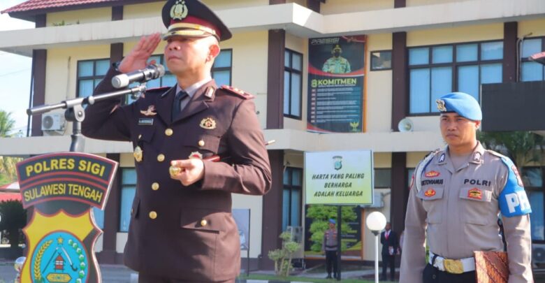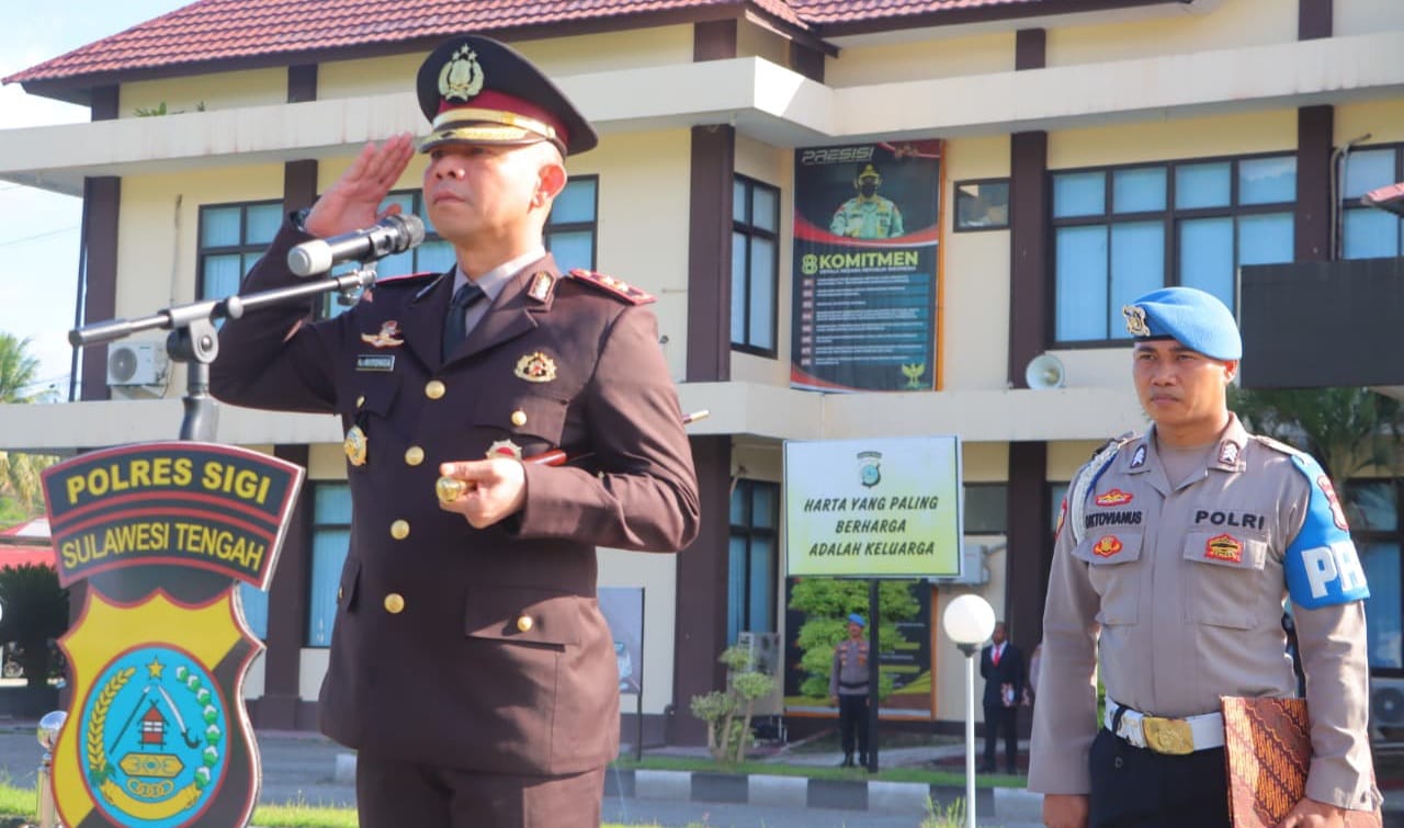 Upacara tersebut dipimpin langsung oleh Kapolres Sigi AKBP Kari Amsah Ritonga, S.H., S.I.K., M.H. selaku Inspektur Upacara, dengan Komandan Upacara IPDA Chandra. Apel upacara diikuti oleh Pejabat Utama (PJU) Polres Sigi, para perwira, serta seluruh personel Polres Sigi.