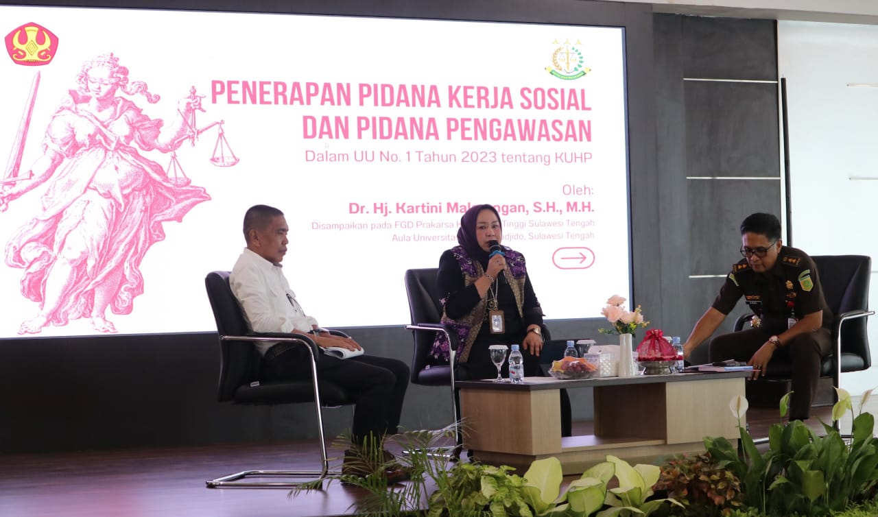 Bidiksulteng.com,Palu – Kejaksaan Tinggi Sulawesi Tengah menyelenggarakan Focus Group Discussion (FGD) dengan tema penting: “Penerapan Pidana Pokok berupa Pidana Kerja Sosial dan Pidana Pengawasan dalam Undang-Undang Nomor 1 Tahun 2023 tentang Kitab Undang-Undang Hukum Pidana (KUHP)”. Bertempat Aula lt 6 kantor Kejati Sulteng,Selasa (2/12/2025).