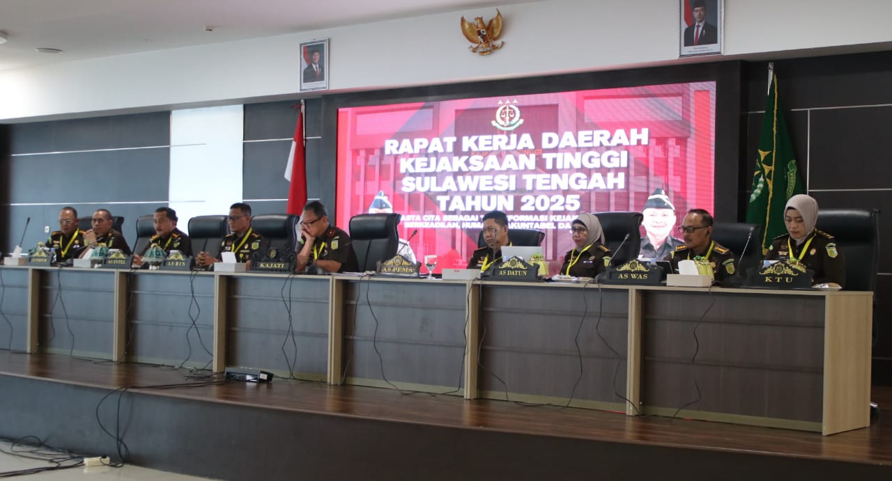 Bidiksulteng.com,Palu – Kejaksaan Tinggi Sulawesi Tengah resmi menggelar Rapat Kerja Daerah (Rakerda) Tahun 2025 sebagai forum strategis untuk melakukan evaluasi menyeluruh atas penyelenggaraan kinerja satuan kerja sepanjang tahun serta merumuskan langkah-langkah perbaikan ke depan.