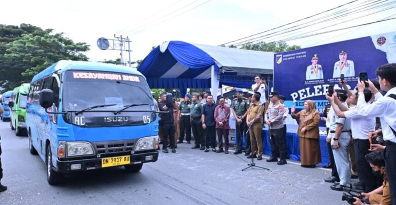 Bidiksulteng.com,Palu – Gubernur Sulteng Dr. H. Anwar Hafid, M.Si secara resmi melepas peserta Program Berani Mudik Gratis di depan Kantor Gubernur Sulawesi Tengah, Senin (22/12).