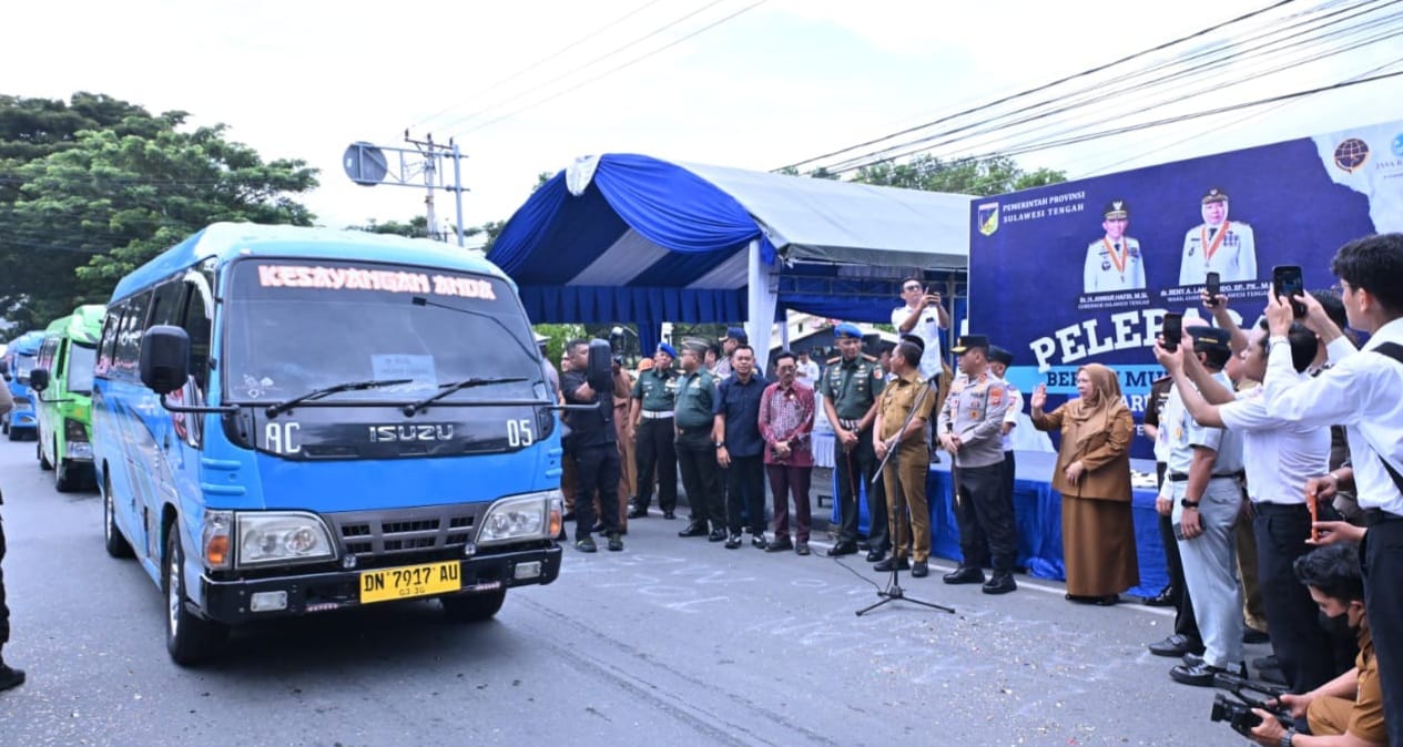 Bidiksulteng.com,Palu – Gubernur Sulteng Dr. H. Anwar Hafid, M.Si secara resmi melepas peserta Program Berani Mudik Gratis di depan Kantor Gubernur Sulawesi Tengah, Senin (22/12).