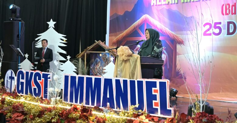 Bidiksulteng.com,Palu – Wakil Gubernur Sulawesi Tengah dr. Reny A. Lamadjido, Sp.PK., M.Kes. menghadiri Perayaan Natal Jemaat Gereja Kristen Sulawesi Tengah (GKST) Immanuel Palu yang digelar di Ballroom Merry Glow Palu, Rabu malam (24/12/2025).