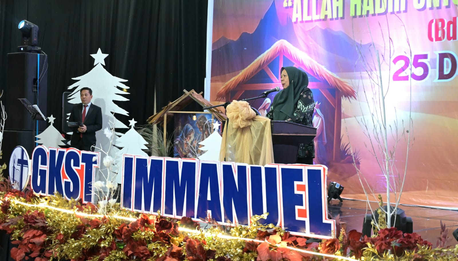 Perayaan Natal GKST Immanuel Palu turut dihadiri Panglima Komando Daerah Militer (Pangdam) XXIII/Palaka Wira, Mayjen TNI Jonathan Binsar Parluhutan Sianipar, Wakapolda Sulawesi Tengah Brigjen Pol Dr.Helmi Kuarta Kusuma P. Rauf,S.I.K,MH, jajaran perangkat daerah, serta sejumlah pemangku kepentingan lainnya.(id)