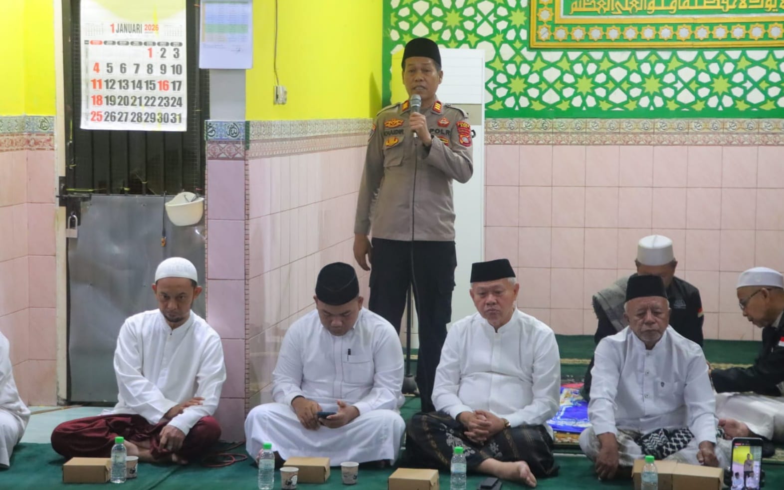 Dalam sambutannya, AKP Haidir menyampaikan pesan-pesan kamtibmas kepada para jemaah, di antaranya terkait bahaya penyalahgunaan narkoba, tindak pencurian, serta maraknya penggunaan knalpot bising yang meresahkan masyarakat. Ia mengajak seluruh elemen masyarakat untuk meningkatkan kepedulian sosial guna menciptakan situasi kamtibmas yang aman dan kondusif.