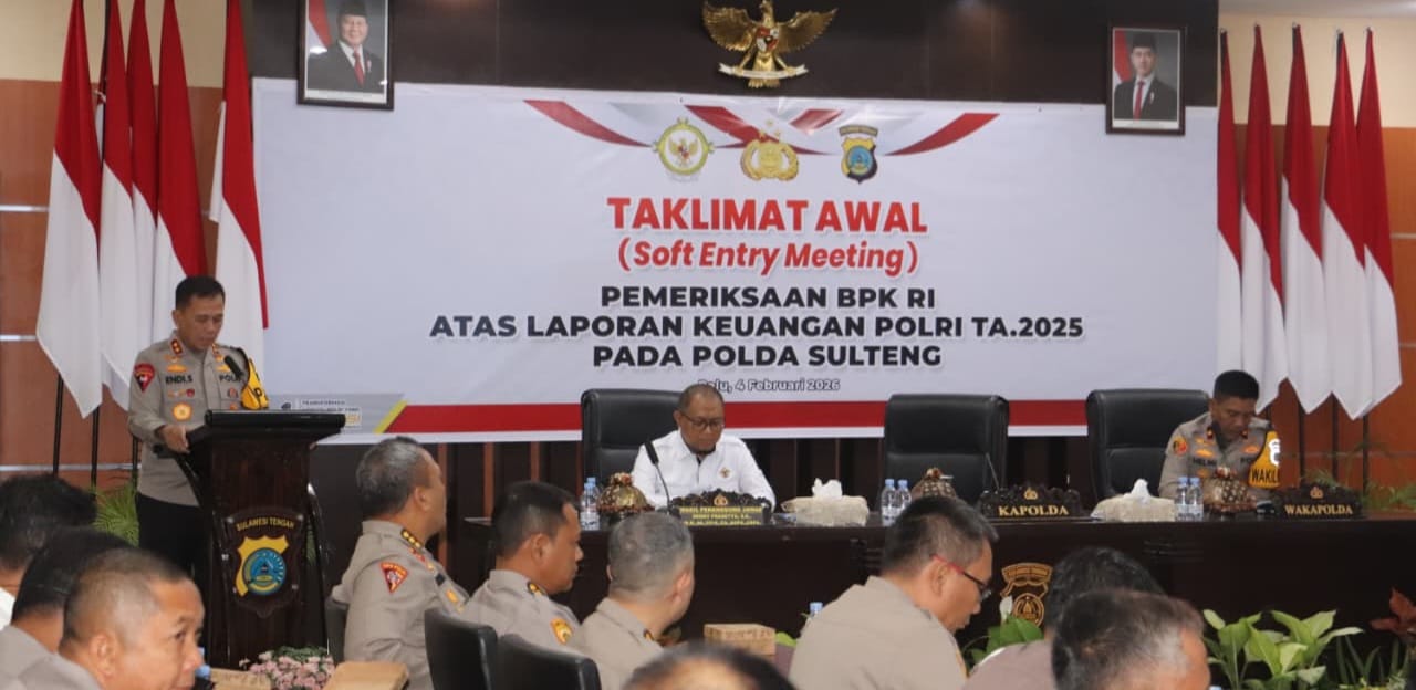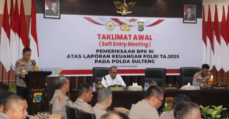 Bidiksulteng.com,Palu – Kepala Kepolisian Daerah (Kapolda) Sulawesi Tengah (Sulteng) Irjen Pol Dr Endi Sutendi menghadiri sekaligus membuka secara resmi kegiatan Entry Meeting Pemeriksaan Laporan Keuangan Polri Tahun Anggaran (T.A) 2025 oleh Badan Pemeriksa Keuangan (BPK) Republik Indonesia (RI), Rabu 04/02/2026 pagi, di Aula Rupatama lantai II Polda Sulteng.