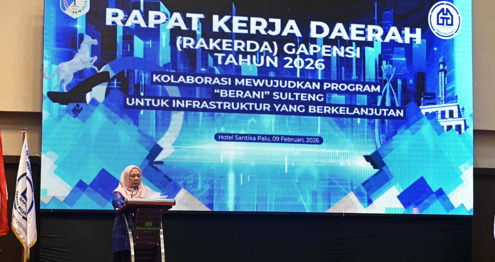 Bidiksulteng.com,Palu – Wakil Gubernur Sulawesi Tengah, dr. Reny A. Lamadjido, Sp.PK., M.Kes., membuka Rapat Kerja Daerah (Rakerda) BPD GAPENSI Sulawesi Tengah Tahun 2026 yang digelar di Ballroom Hotel Santika, Senin (09/02/26).