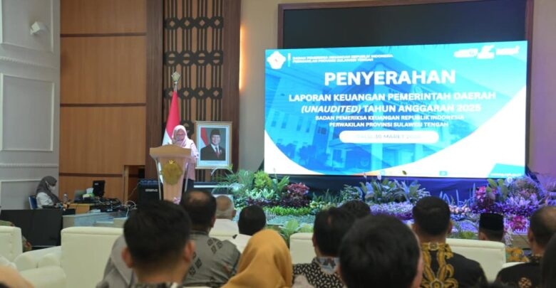 Bidiksulteng.com,Palu – Wakil Gubernur Sulawesi Tengah, Reny A. Lamadjido, menghadiri kegiatan Penyerahan Laporan Keuangan Pemerintah Daerah (LKPD) unaudited Tahun Anggaran 2025 yang digelar di Auditorium Badan Pemeriksa Keuangan (BPK) Perwakilan Provinsi Sulawesi Tengah, Senin (30/3/2026).